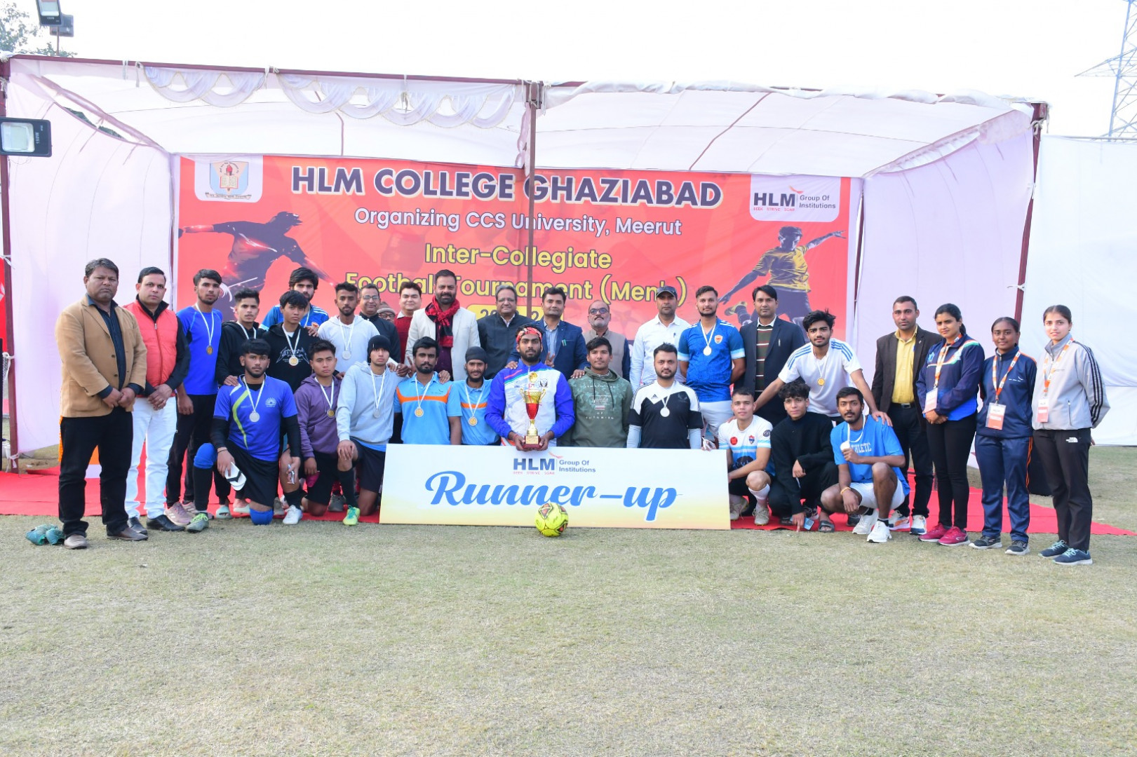 HLM College Ghaziabad proudly hosted the CCS University, Meerut Inter-Collegiate Football Tournament (Men's) 2023-24, showcasing exhilarating matches and fierce competition on the field. Amidst the thrilling clashes, HLM College's team displayed exceptional skill and determination, ultimately securing the runner-up position in the tournament. With commendable teamwork and perseverance, they left a mark of excellence, earning recognition for their outstanding performance. The event not only celebrated the spirit of sportsmanship but also highlighted HLM College's commitment to nurturing talent and promoting sports culture within the community.