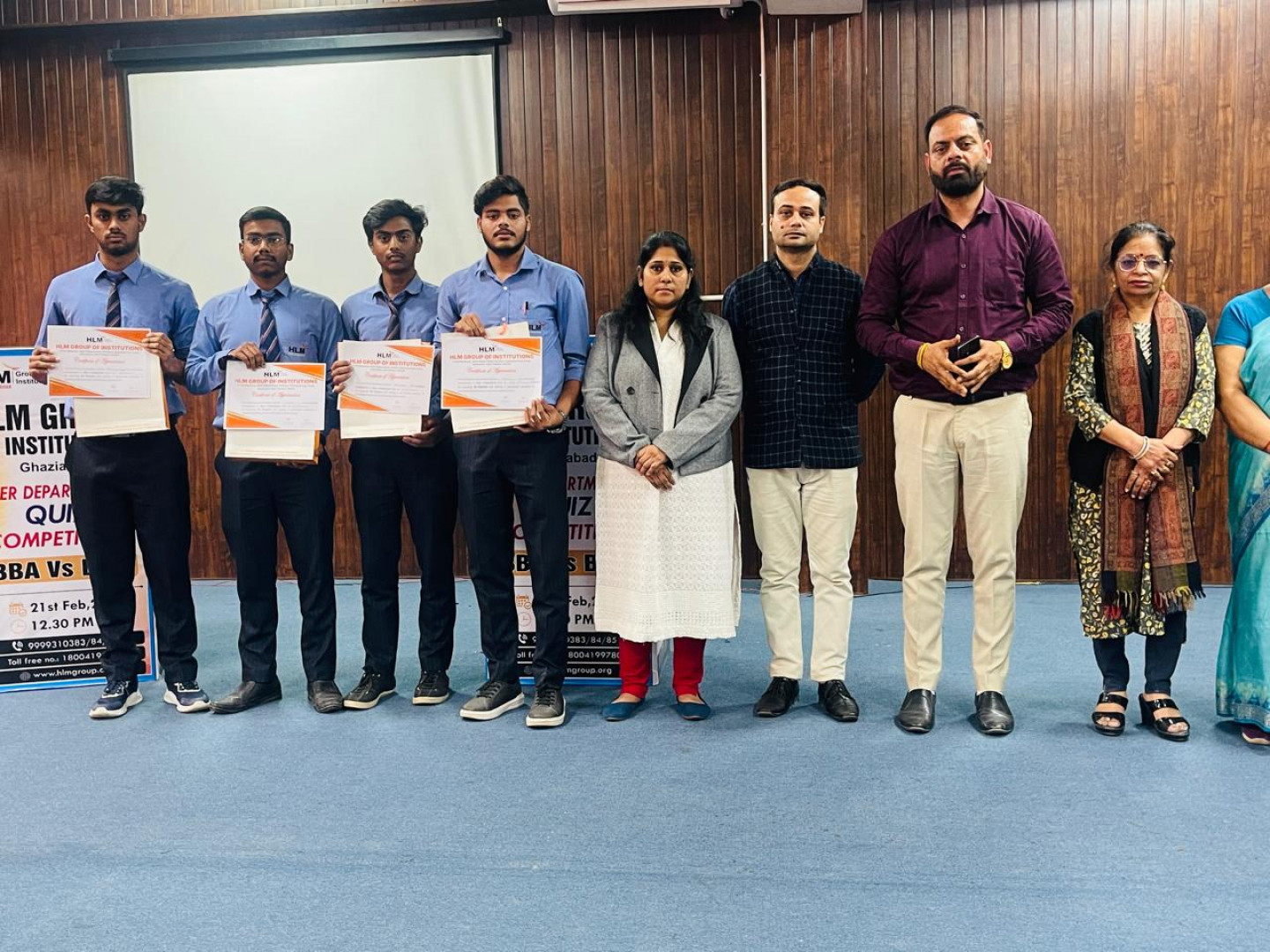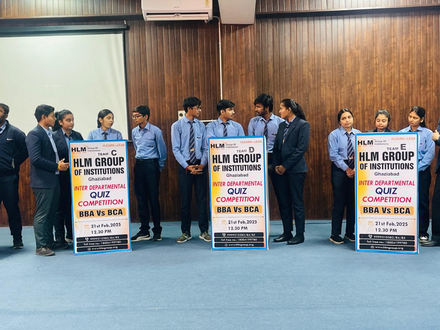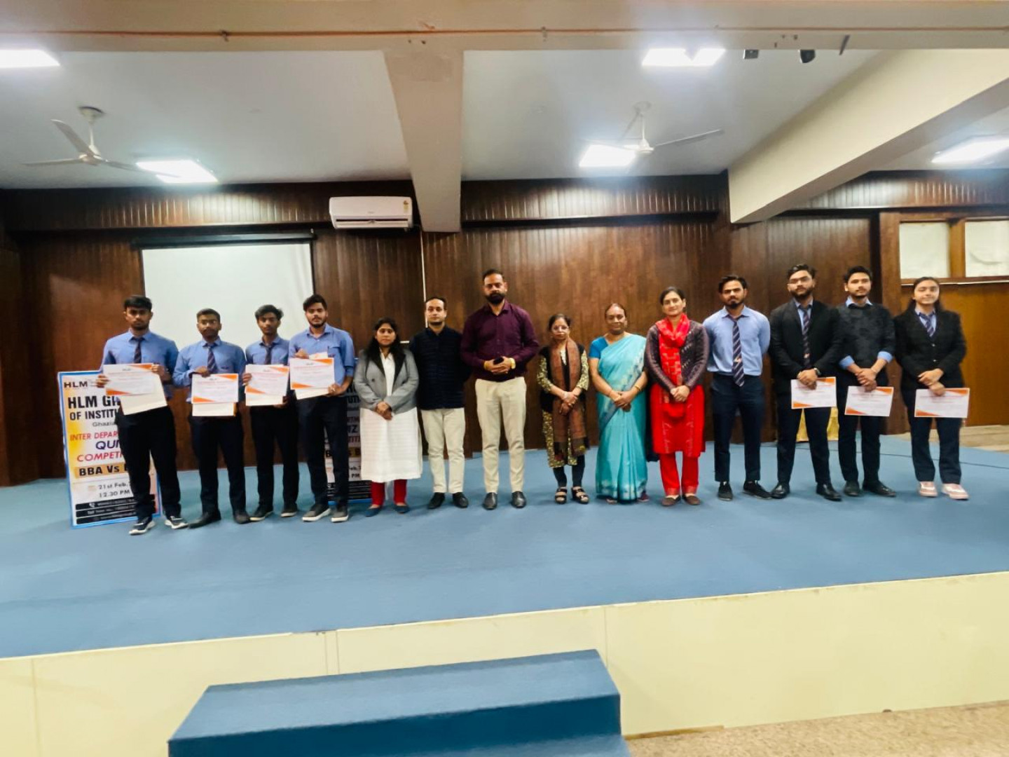 The Inter-departmental Quiz Competition titled "BBA Vs BCA" was held on the 21st of February, 2025, at the Auditorium of HLM Group of Institutions. This event, organized by the BBA and BCA departments, aimed to foster healthy competition, teamwork, and knowledge-sharing among students from different academic backgrounds. It provided an excellent platform for students to showcase their general awareness and subject-related expertise in a fun and engaging format. The primary objective of the competition was to encourage interaction between students of different disciplines, enhance their knowledge, and offer them an opportunity to display their intellectual abilities in a competitive environment. The quiz concluded with the BBA Team A emerging as the winners, while the runners-up were from the BCA Team F. The event culminated in an award ceremony where the winning team received prizes and certificates. Overall, the competition proved to be an enriching experience for all participants and was highly appreciated by both students and faculty members. Such events significantly contribute to the overall development of students and should be continued in the future. The organizers would like to express their heartfelt gratitude to the Director, Assistant Director, Dean of Academics, all Principals, Faculty members, participants, and volunteers for their invaluable support in making the event a success. A special thank you is extended to the audience for their enthusiastic support and encouragement throughout the competition.